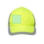 Casquette de sport en polyester doux. Fermeture réglable avec velcro et dos avec filet respirant. Couleur jaune fluor avec détails réfléchissants sur la visière, l’avant et la fermeture.