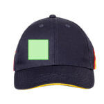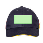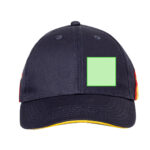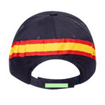 Casquette avec motif drapeau espagnol en coton peigné. 6 panneaux, avec sandwich tricolore et drapeau latéral et arrière. Avec orifices de ventilation brodés et fermeture réglable par velcro.