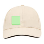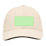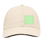 Casquette 6 pans en coton peigné résistant 250g/m2. Avec un sandwich sur la visière, des trous de ventilation brodés et une fermeture à boucle métallique.