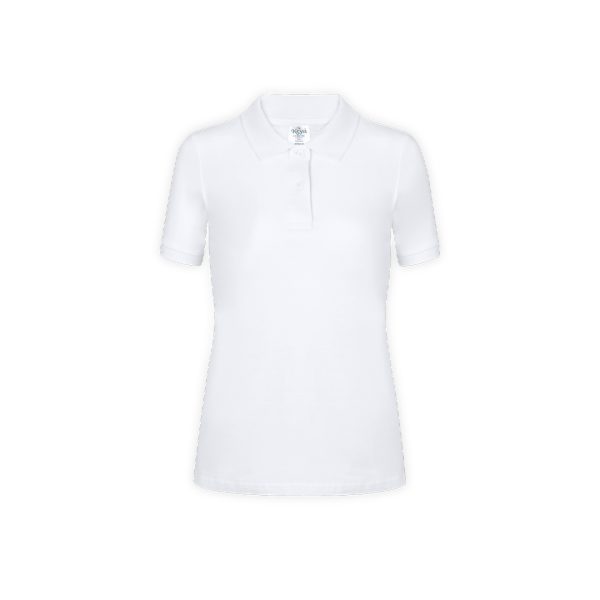 Polo piqué blanc KEYA MPS180 pour femme.En 100% coton de 180 g/m2. Avec 2 boutons assortis. Disponible en tailles S, M, L, XL, XXL.