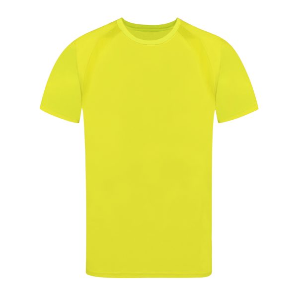 T-shirt technique pour adulte en matériau 100% polyester respirant de 135g/m2. Avec manche Ranglán, col rond et bandes frontales et latérales en tissu respirant microperforé. Disponible en tailles S, M, L, XL, XXL.