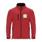 Veste souple RPET en 3 couches, 340 g/m². Avec membrane 8000 mm, imperméable et respirante. Extérieur en Soft Shell et intérieur en micro-polaire noire. Avec poche extérieure sur la poitrine droite et deux poches latérales zippées. Fermeture centrale à glissière et zips inversés sur les poches, avec tirettes noires à cordon. Manches raglan avec système de fermeture Velcro aux poignets en noir. Protège-menton assorti et taille ajustable avec bande élastique et stopper. Étiquette RPET sur le bord du vêtement.