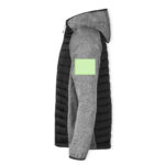Veste unisexe respirante en combinaison de matériaux à coque molle et polyester, avec tissu tactile plume rembourrée sur le devant et le dos. Capuche et manche de style ranglán avec élastique au col, poignets et ourlet. Fabrication élégante en combinaison de couleurs noires et grises, résistantes au vent et à l’eau. Fermeture à glissière et poches latérales à fermeture éclair avec poignées pour une ouverture facile. Disponible en tailles S, M, L, XL, XXL.