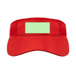 Visière en polyester de couleurs vives. Fermeture par velcro ajustable, côtés matelassés avec des panneaux en tissu filet pour la transpiration.