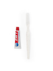 Ensemble dentaire avec brosse à dents et dentifrice. Contenu:Brosse à dents en canne de blé, afin de favoriser l’utilisation de matières premières naturelles et de réduire les émissions polluantes.Dentifrice en tube de 6 gr, avec bouchon à vis.Ensemble présenté dans une boîte individuelle en carton recyclé. Personnalisations possibles :TAMPOGRAPHIE C