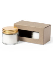Ensemble de bougies aromatiques, à la cire végétale et à l’arôme de fleur de Fresia. Dans un pot en verre avec un bouchon à vis en métal et une finition dorée. Présenté en boîte kraft individuelle. Personnalisations possibles :TAMPOGRAPHIE E