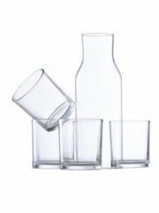 Ensemble carafe et verres au design sobre, en cristal. Comprend 4 verres de 320 ml et un pichet de 1,35 l. Présentation en boîte individuelle de conception kraft. Personnalisations possibles :SÉRIGRAPHIE CIRCULAIRE F