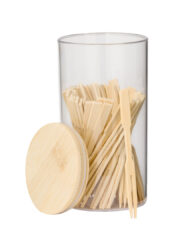 Ensemble de baguettes en bambou. Il dispose de 50 pièces présentées dans un bocal transparent élégant avec couvercle en bambou sous pression. Présenté dans une boîte individuelle kraft. Des matériaux comme le bambou favorisent l’utilisation de matières premières naturelles et réduisent les émissions polluantes. Il est issu d’une plante très résistante et polyvalente, avec une croissance et une régénération rapides, ce qui est une excellente alternative à l’utilisation du bois traditionnel. Personnalisations possibles :SÉRIGRAPHIE F