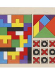 Set puzzles bois3 jeux en bois, idéal pour stimuler créativité et amusement des enfants.Puzzle grand : 26 pièces lettres en bois peintes en couleurs vives.Puzzle petit : 7 pièces polygonales pour former diverses figures.Tic-tac-toe : 5 pièces rouges et 4 noires. Personnalisations possibles :SÉRIGRAPHIE E