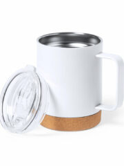 Tasse thermique en acier inox à double paroi et 330ml de capacité. Spécialement conçu pour le marquage par sublimation et la finition en blanc brillant. Avec doseur sur couvercle avec ouverture facile, sans BPA, et base en liège naturel. Il est idéal pour votre bureau, table ou toute autre surface où vous pouvez tranquillement savourer votre boisson préférée. Personnalisations possibles :SUBLIMATION MUGS SUR 1 FACE