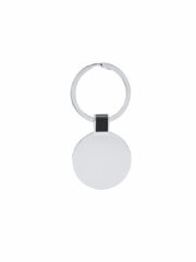 Porte-clés en métal avec détail en couleur noire. Personnalisations possibles :TAMPOGRAPHIE D