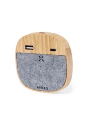 Chargeur sans fil en bambou et feutre RPET. Fonction de charge 15W et compatible avec les appareils équipés de la technologie Qi. Comprend 2 sorties pour multi-chargeurs : 1 sortie de type USB et une sortie de type C. Avec badge RPET. Grande surface de marquage, présentée dans une jolie boîte kraft design.Le feutre RPET recyclé est le résultat de la combinaison du processus de recyclage des matières plastiques avec l’ancienne technique de fabrication du feutre, résultant en un matériau éco-tendance qui, en plus d’être d’origine recyclée, devient également recyclable. Personnalisations possibles :GRAVURE LASER 1