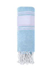 Douce serviette paréo en 100% coton recyclé de 180g/m2. Disponible dans une gamme variée de couleurs dans un ton bicolore. Logo en étiquette latérale. Présenté individuellement en sac. Personnalisations possibles :SÉRIGRAPHIE F