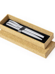 Set de stylo et roller en acier inox recyclé. Stylo à capuche à mécanisme rotatif et roller, tous deux avec clip métallique et encre bleue, avec corps de finition brillant et Logo acier inox recyclé inclus. Présentés dans un étui en liège.L’acier est l’un des matériaux les plus demandés et peut être trouvé presque partout, des produits d’usage quotidien aux grandes constructions. Avec d’innombrables propriétés, parmi lesquelles la durabilité et son haut degré de réutilisation, en faisant une alternative très appréciée en solutions de durabilité. Dûment traité, il permet d’obtenir de nouvelles ressources d’utilisation infinie. Personnalisations possibles :TAMPOGRAPHIE D