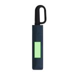 Parapluie pliant à 8 panneaux en RPET. 100 cm de diamètre, ouverture et fermeture automatiques, système pare-vent et en matériau résistant au pongee. Avec des tiges en fibre de verre noire, fermeture velcro et poignée ergonomique avec mousqueton à crochet intégré. Présenté dans un cas individuel correspondant. Comprend un logo distinctif de RPET.