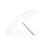 Parapluie pliant à 8 panneaux et 106 cm de diamètre, en matériau pongé 190T résistant avec une finition naturelle. Ouverture manuelle, avec tiges en métal noir et sangle avec fermeture velctro. Manche en bois avec cordon et gaine assortis dans le même matériau.
