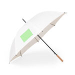 Parapluie 8 panneaux de taille XL -130 cm de diamètre-, fabriqué en matériau pongé 190T résistant avec une finition naturelle. Ouverture automatique et avec mécanisme anti-vent. Tiges en fibre noire, avec manche droit en bois et fermeture velcro